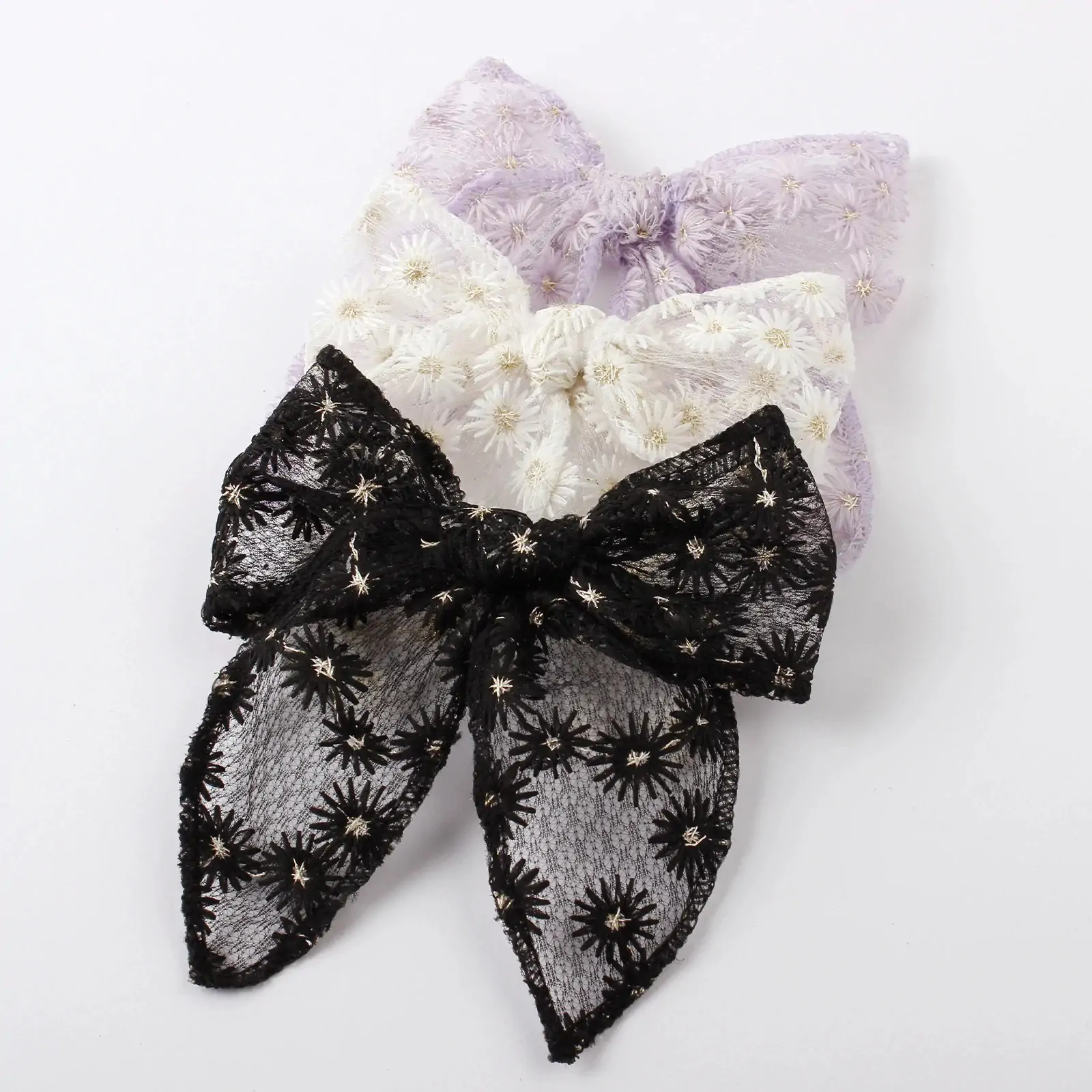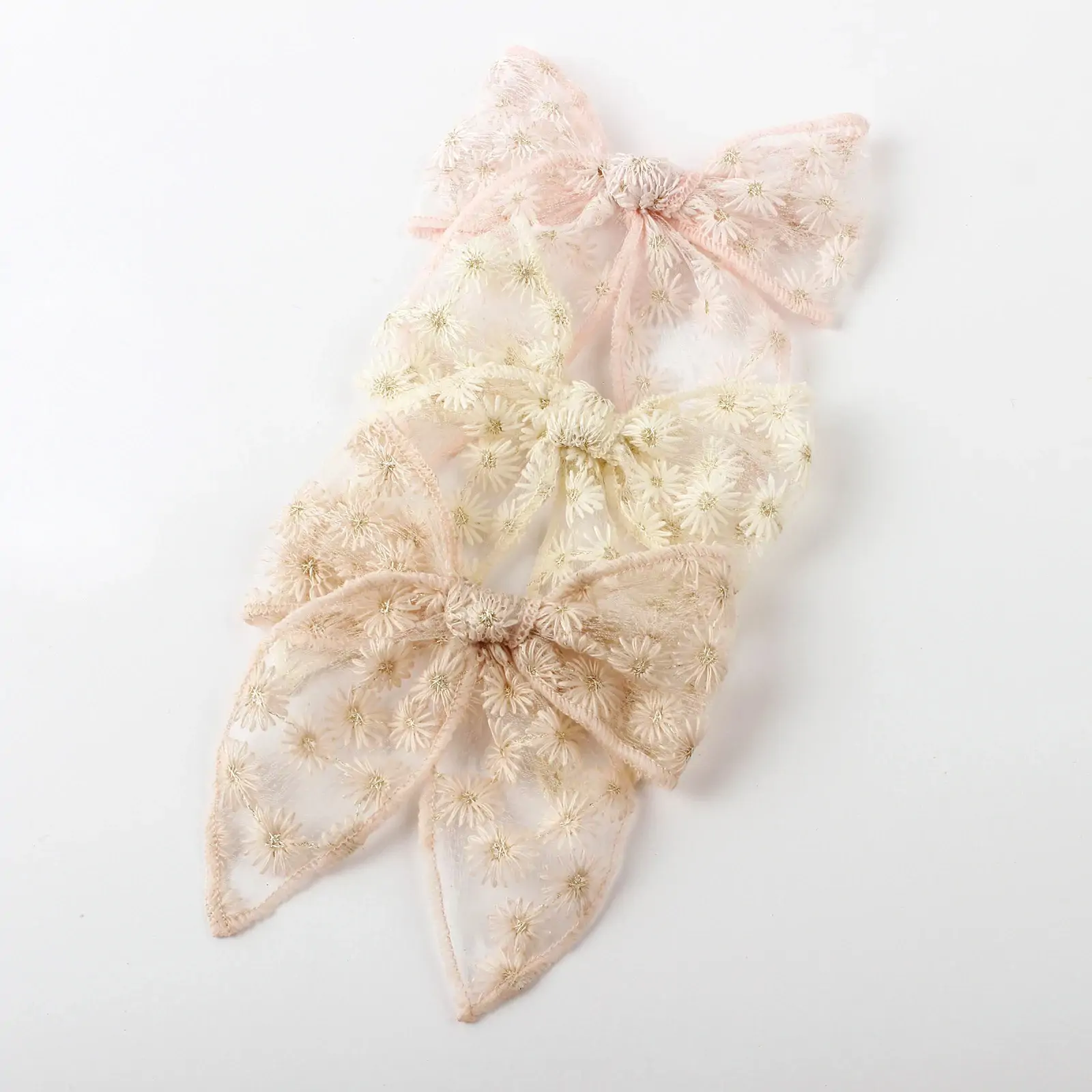 مشابك شعر أطفال دانتيل مطرزة بزهور